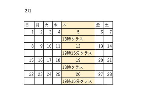 2026年2月のクラス予定です